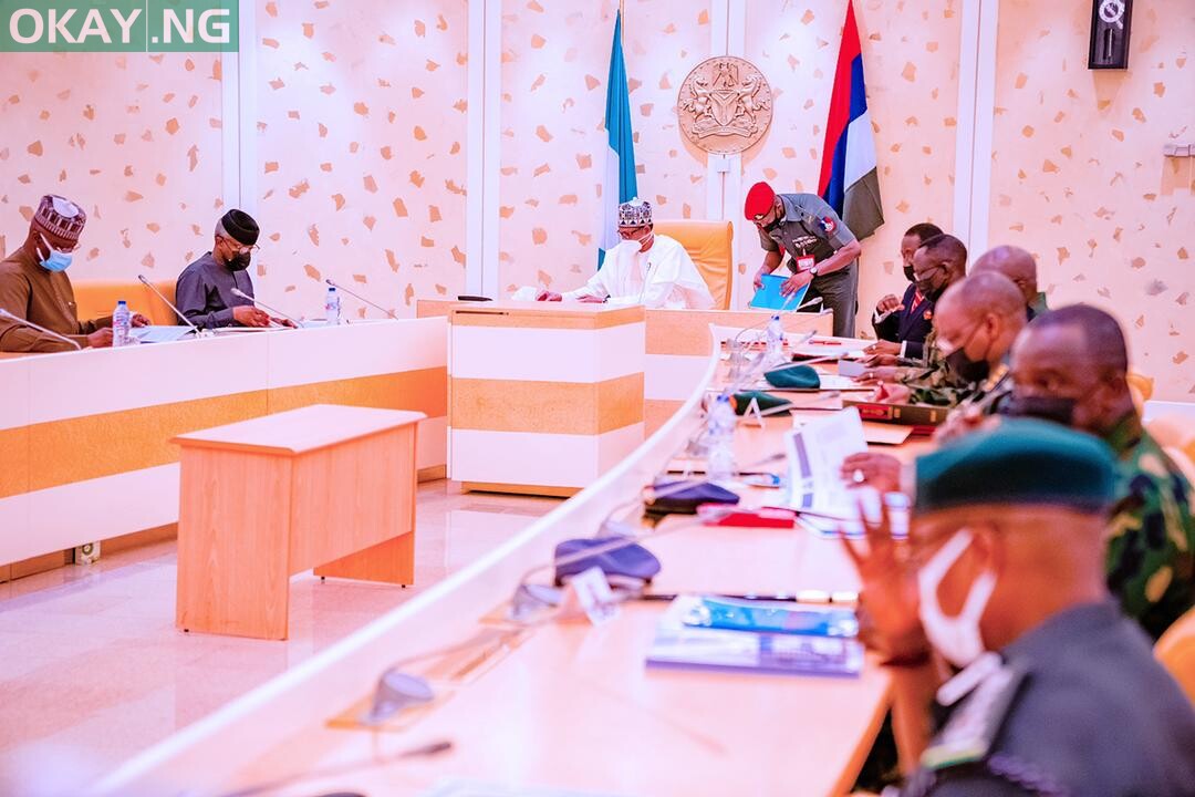 The meeting is also being attended by Attorney General of the Federation (AGF) and Minister of Justice, Abubakar Malami, Minister of Foreign Affairs, Geoffrey Onyeama, Minister of Interior, Rauf Aregbesola; Director General of the National Intelligence Agency (NIA), Ahmed Rufai Abubakar; and Chief of Defence Intelligence, Major-General Samuel Adebayo.