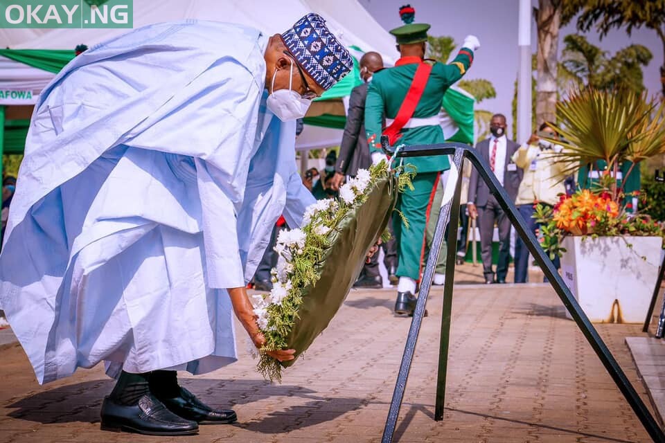 Vice President Osinbajo was next to lay the wreath after Buhari followed jointly by President of the Senate, Dr Ahmad Lawan and Speaker of the House of Representatives, Hon Femi Gbajabiamila and Chief Justice of the Federation, Justice Tanko Mohammed.
