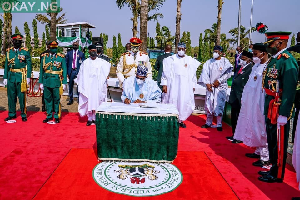 The President later signed the Remembrance Anniversary in the company of Osinbajo, the leadership of the National Assembly and the service chiefs.