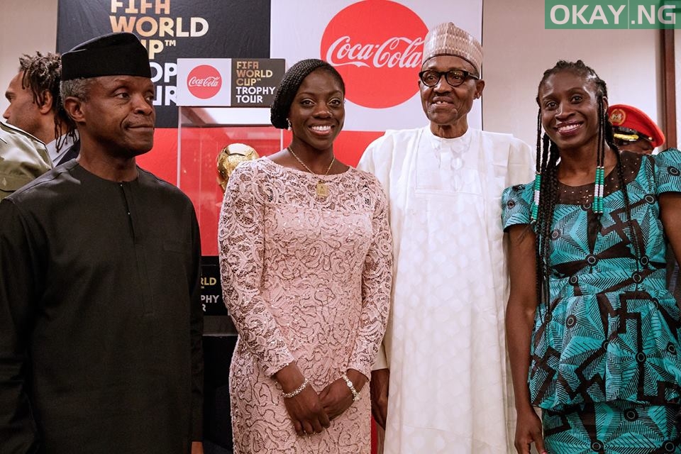 President Muhammadu Buhari has received the FIFA World Cup Trophy ahead of the 2018 Football World Cup, CHAN Super Eagles Team and Bobsleigh Winter Olympic Team in State House on 7th Mar 2018.