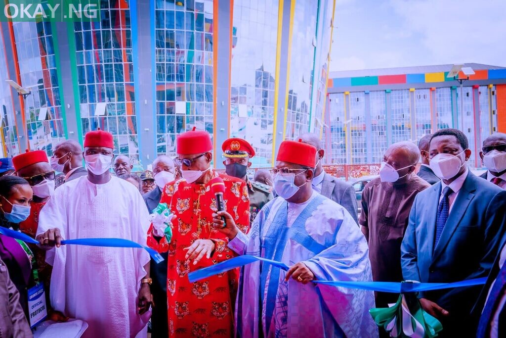 At Onueke, the president inaugurated the 5km dual carriage airport road and the airport’s Presidential Lounge.