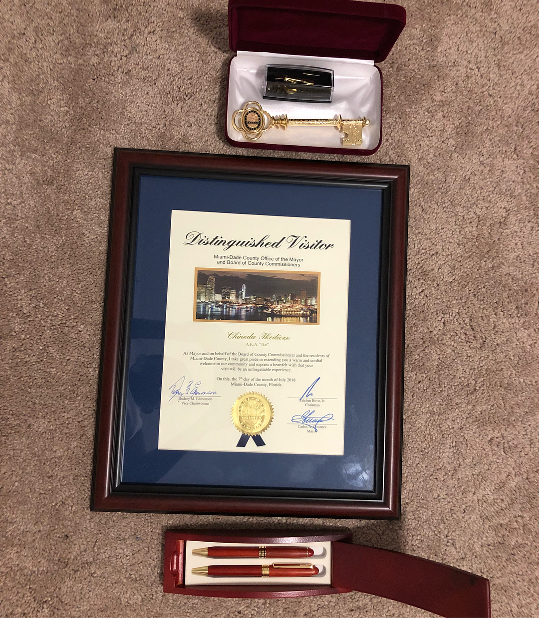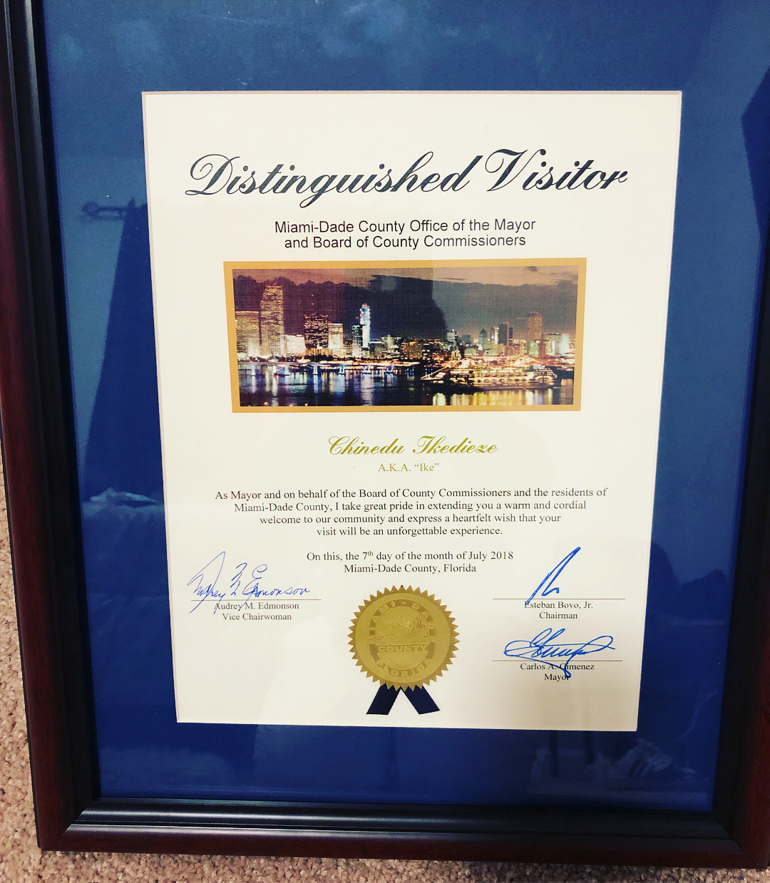 PHOTOS: Chinedu Ikedieze Honored As A Distinguished Visitor To Miami-Dade County
