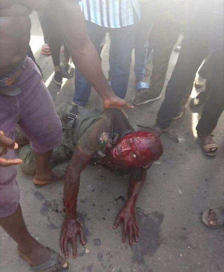 The police officer was immediately disarmed by party faithfuls who descended on him and smashed his head with sticks and other dangerous weapons before being rescued and taken to a safe custody.