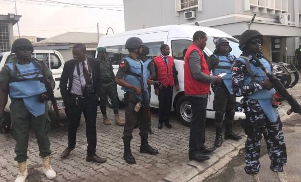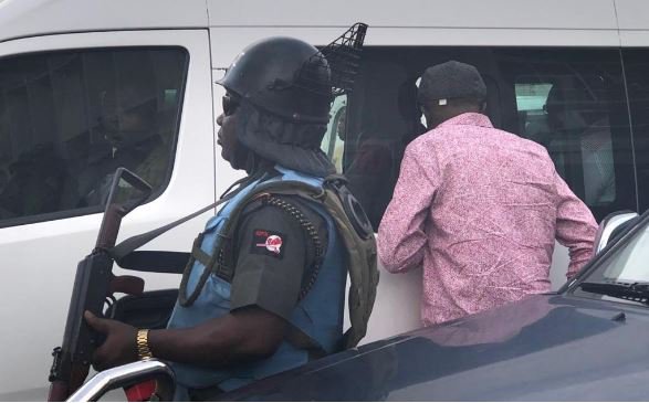 Monitoring the event, The ex-governor arrived around 8:30am, in a White Toyota Hiace bus with an Abuja number plate: BWR-630AT, in company of officials of the Economic and Financial Crimes Commission (EFCC) and officers of the Nigerian Police Force.