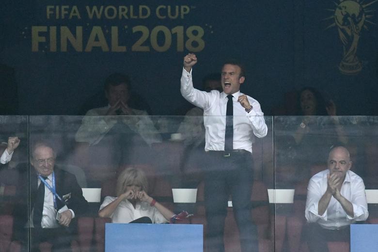 French President Emmanuel Macron did not hide his emotions when France beat Croatia 4-2 in the World Cup final Sunday. A photo that immediately went viral on social media shows Macron jumping for joy like any regular fan at the official box, where staid faces and composed clapping seem to be the norm.