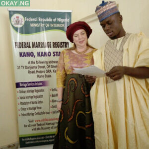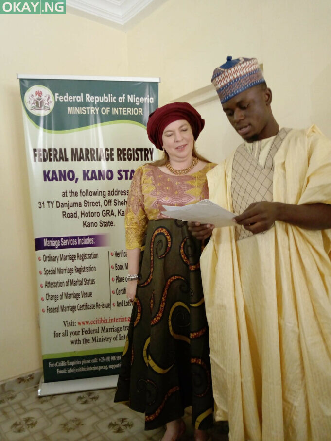 23-year-old Kano man, Isah Suleiman, and his newlywed bride, Jannie Ann Reimann has tied the knot in a court marriage on Thursday, 17th December at the federal marriage registry in Kano.