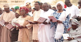 Lagos State Governor, Mr. Akinwunmi Ambode; General Overseer, Redeemed Christian Church of God (RCCG), Pastor Enoch Adeboye; Wife of Lagos State Governor, Mrs. Bolanle Ambode; Wife of General Overseer, Redeemed Christian Church of God (RCCG), Mrs. Foluke Adeboye and General Overseer, The Redeemed Christian Evangelical Mission (TREM), Bishop Mike Okonkwo, all at the Y2016 Annual Thanksgiving Service at the Lagos House, Ikeja, on Sunday, January 03, 2016. More photos after the cut….