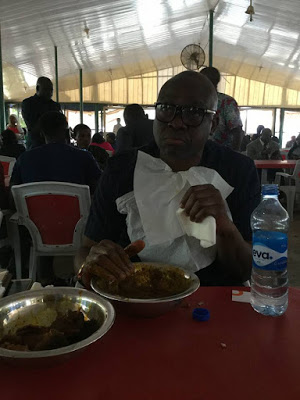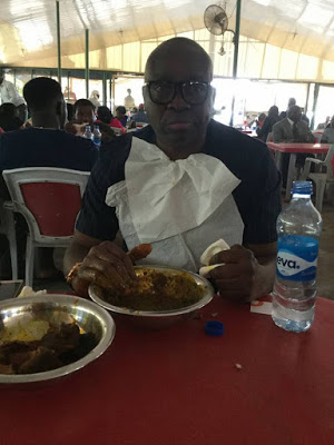 Governor Fayose of Ekiti State was spotted at a local Amala joint today eating Gbegiri and Ewedu in Abuja.