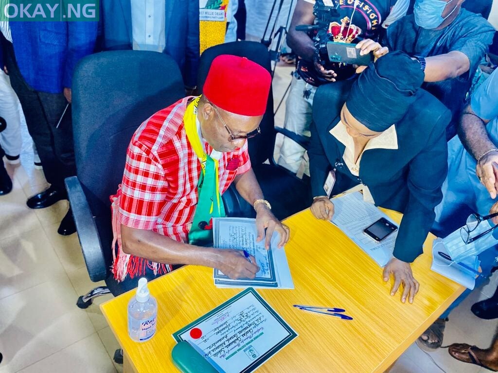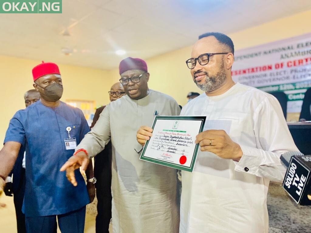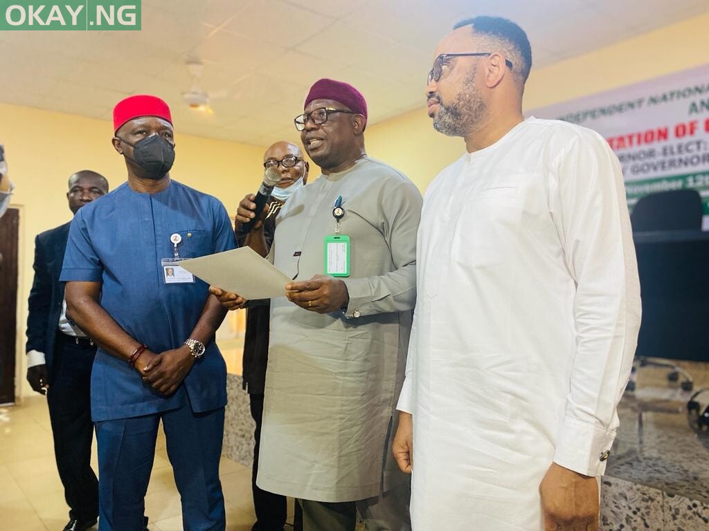 See pictures from the presentation ceremony where his Deputy Governor-elect, Onyeka Ibezim, also got his Certificate of Return.