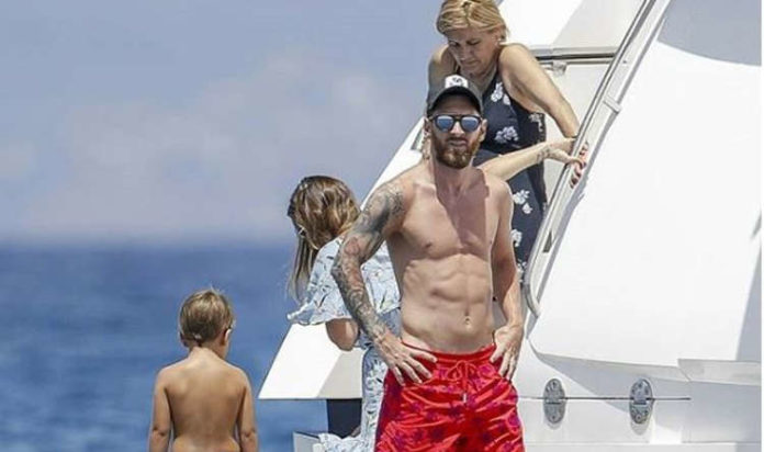 Barcelona player Lionel Messi was spotted with his family enjoying a vacation in Ibiza.