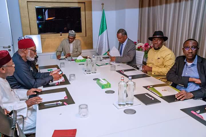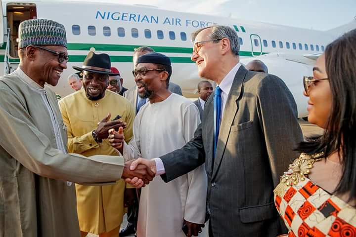 President Buhari was welcomed by Judge Chile Eboe-Osuji, President of the ICC, Vice-President of the Court, Marc Perrin de Brichambut and the Nigerian Foreign Affairs Minister, Geoffrey Onyeama.