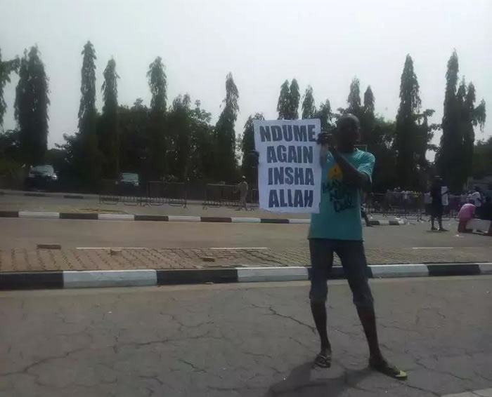 The protesters, who were made up of Internally Displaced Persons and Borno State indigenes resident in Abuja, said Ndume’s suspension was unfair, adding that Borno South people have lost their voice with the suspension of the lawmaker.