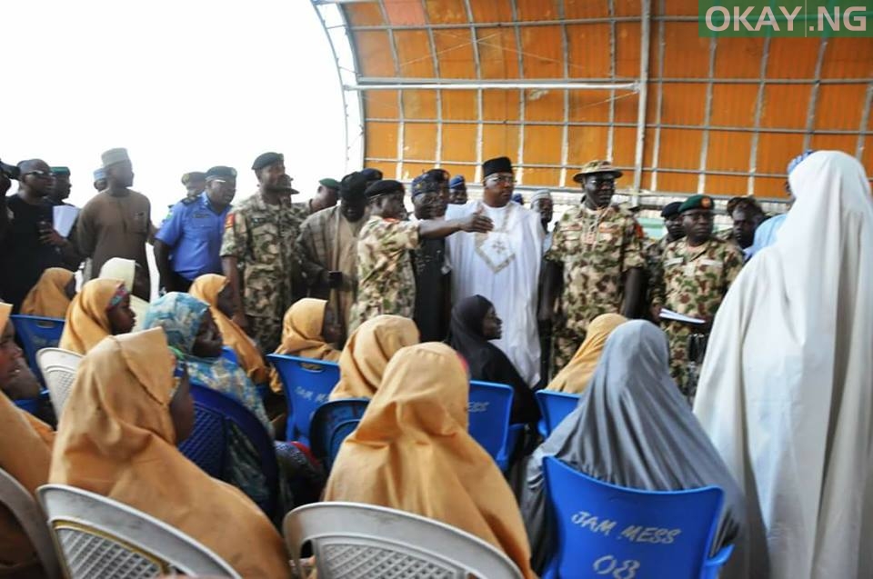The Theatre Commander, Operation Lafiya Dole, Maj.-Gen. Rogers Nicholas, handed over the girls and one boy to the four-member Federal Government Delegation at the Nigerian Air Force base in Maiduguri on Wednesday evening