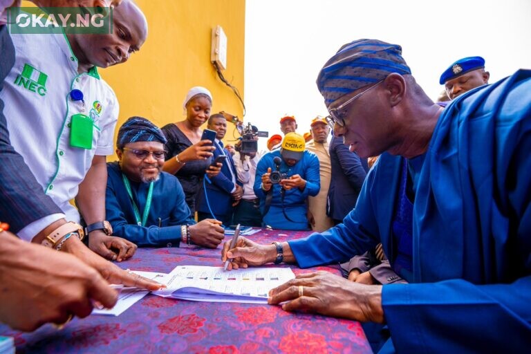 Home News PHOTOS: Sanwo-Olu collects permanent voter card as PVC collection begins