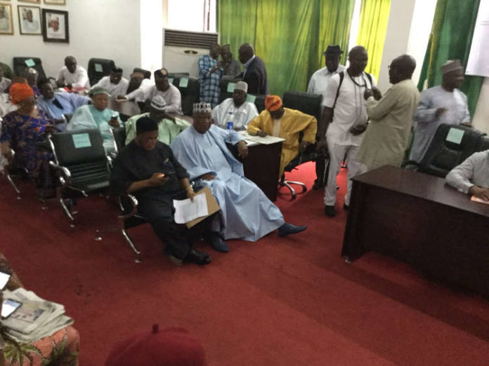 Senate President Bukola Saraki, and governors of Benue and Sokoto state, Samuel Ortom and Aminu Tambuwal, attended the National Executive Committee meeting of the Peoples Democratic Party on Thursday in Abuja.