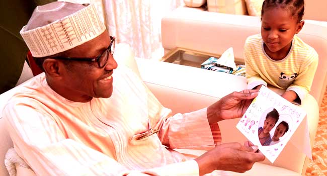 After being presented with the card, President Buhari said he is happy with his improved health and thanked all Nigerians for their prayers.