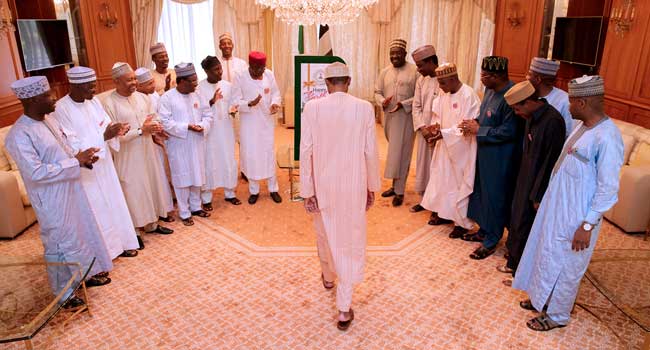 The Chief of Army Staff, Lt.-General Tukur Buratai; Chief of Naval Staff, Vice Admiral IE Ibas; Chief of Defense Staff, General Abayomi Olonisakin, and the Chief of Air Staff, Air Marshal Sadique, all made it to the State House to celebrate with the President.