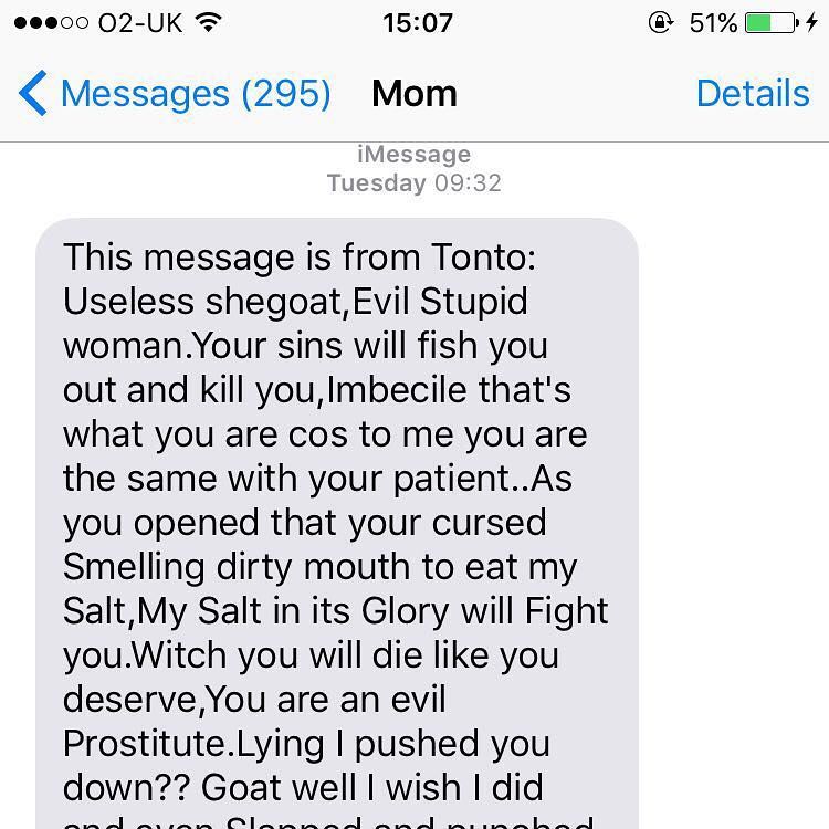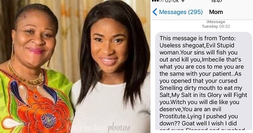 PHOTOs: Shocking Text Messages Tonto Dikeh Sent To Churchill’s Mom