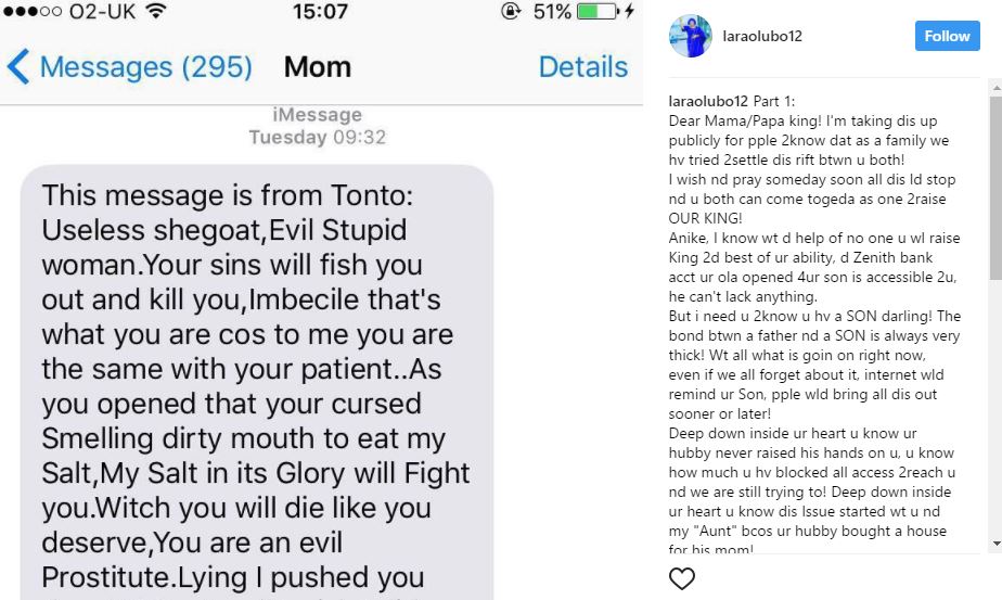 Dear Mama/Papa king! I’m taking dis up publicly for pple 2know dat as a family we hv tried 2settle dis rift btwn u both!