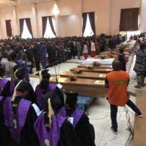 Okay.ng has learned that the mass burial was organized by the Catholic diocese of Ondo, in collaboration with the Ondo state government.