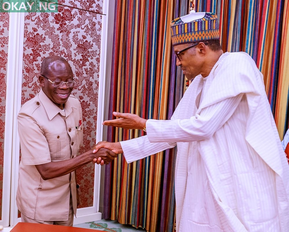 President Buhari on Thursday received embattled National Chairman of the All Progressives Congress (APC), Adams Oshiomhole in State House.