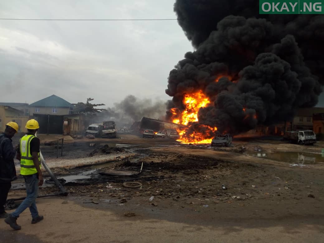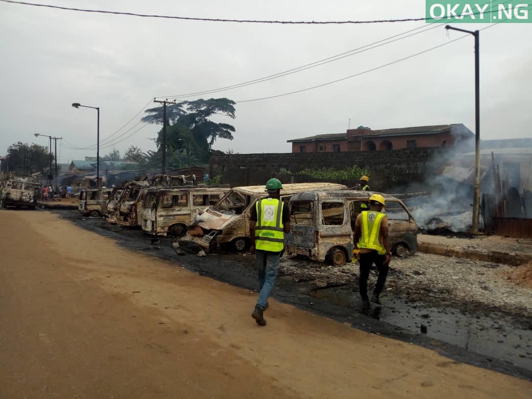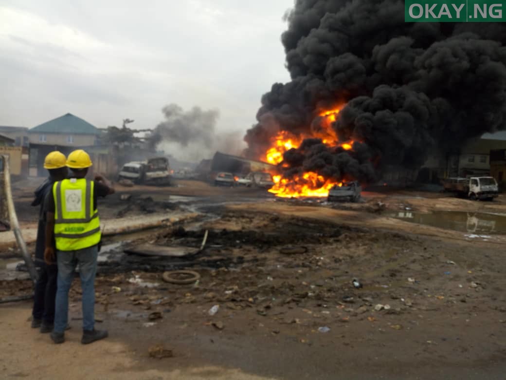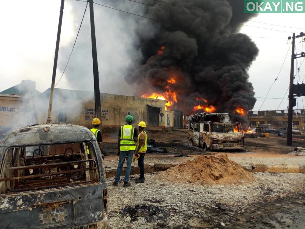 “While trying to escape from the security agencies, some of the siphoned fuel spilt into the drainage and the vandals were alleged to have set the spilt fuel on fire in a bid to deter the security agencies from apprehending them. The fire then spread back to the pipeline, the point where the vandals had siphoned the fuel and exploded with escalating fire which led to 2 fatalities and over 30 vehicles burnt.”