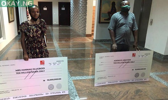 Okay.ng understands that the chairman of the Lagos Judicial Panel, Doris Okuwobi, presented the cheques to Adebayo Abayomi, for the extrajudicial killing of his mother Kudirat Adebayo, and Hannah Olugbodi for being shot by a police officer.