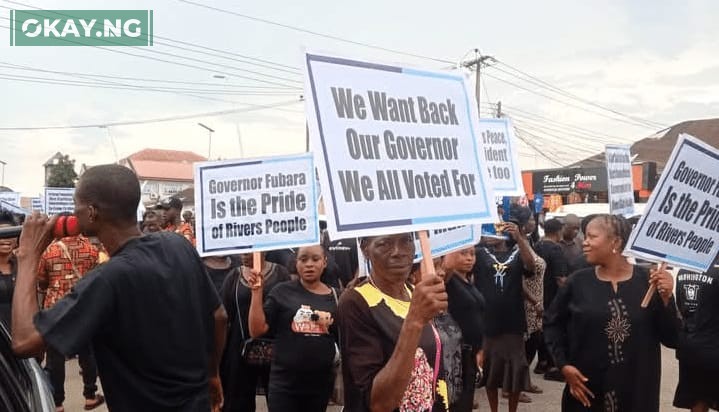 The protest is the latest in a wave of public demonstrations—both in support of and against Governor Fubara—following the political crisis that erupted in Rivers State on March 18. On that day, President Bola Tinubu declared a State of Emergency in the state, leading to the suspension of Governor Fubara, Deputy Governor Ngozi Odu, and members of the State House of Assembly.