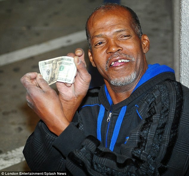 The homeless man then flashed a jagged grin, and proudly posed with his one-of-a-kind prize.