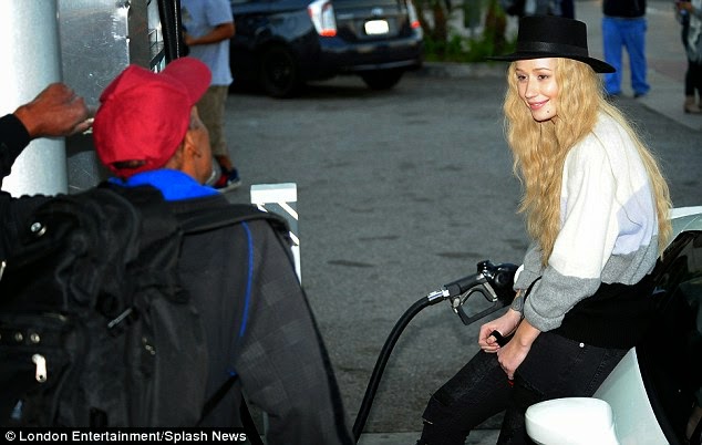 Iggy Azalea was in a charitable mood while pumping petrol at a Westwood gas station on Friday.