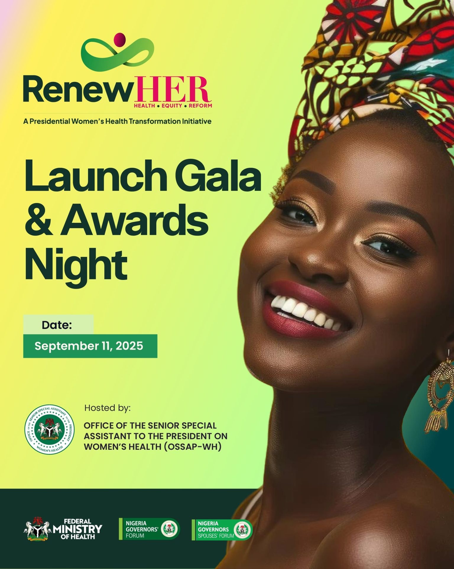 The landmark event will officially introduce RenewHER (Health, Equity, and Reform), a Presidential Women’s Health Transformation Initiative spearheaded by the Office of the Senior Special Assistant to the President on Women’s Health (OSSAP-WH) and championed by Dr. Adanna Steinacker.