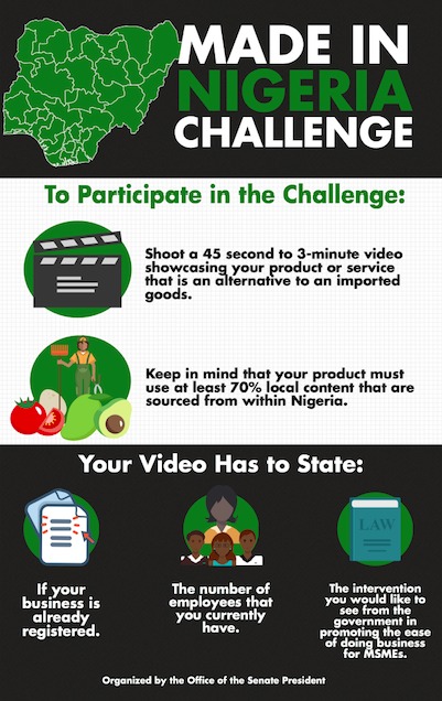 The President of the Senate, Dr Abubakar Bukola Saraki has launched a contest to promote made in Nigeria products.