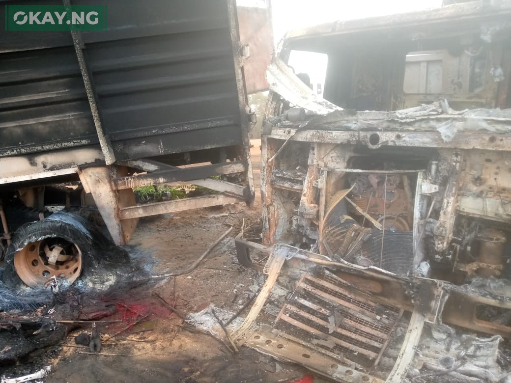 Eyewitnesses say the tanker fell while attempting to navigate the deplorable condition of the Agaie-Bida road, resulting in a fire that consumed both vehicles and their occupants.