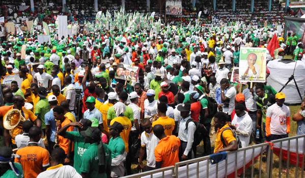 The Peoples Democratic Party (PDP) presidential rally is currently going on in Calabar, Cross River State. Massive crowd turned out to support president Goodluck Jonathan. More photos below…