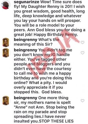 “What’s the meaning of this Sir? You didn’t tag me you don’t know my IG handle either. You’ve tagged other people and bloggers and you didn’t even have the courtesy to call me to wish me a happy birthday and you’re doing this online? What a pity. I would overly appreciate it if you stopped this. God bless.