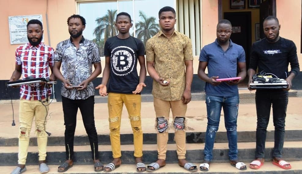 This was disclosed in a statement by Tony Orilade, EFCC’s Spokesman on Tuesday, listing the suspects as Ola Sam, Demeji Abiola, Segun Isaac, Oyinloye Jubril, Bamidele Adeboyega, Hassan Afeez and Sanni Muyideen.