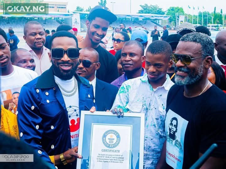 Kanyeyachukwu, affectionately known as “Kanye,” lives with autism but refuses to be defined by it. His groundbreaking work was unveiled on April 2 at Eagle Square in Abuja, earning him a coveted spot in the Guinness World Records. The colossal masterpiece, titled “Impossibility is a Myth,” spans a staggering 12,303 square meters—smashing the previous record of 9,652 square meters.