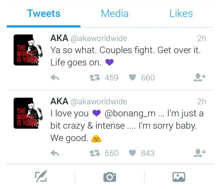 South African Rapper, AKA Begs Bonang Matheba After Breaking Up On Twitter