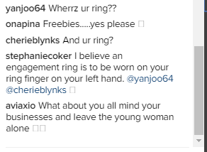 She posted the selfie above and followers who were concerned about her ring asked her. see below…