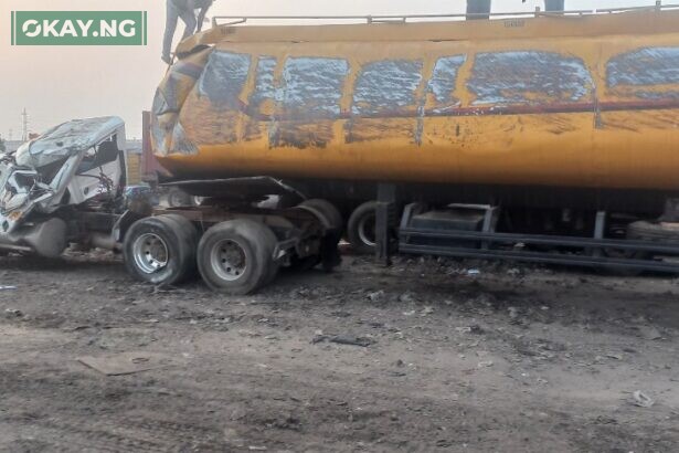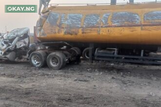 A fuel-laden tanker has fallen on a stationary towing van at Otto…