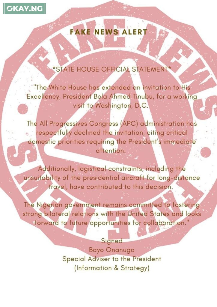 The Nigerian Presidency has firmly rejected a widely circulated statement alleging that President Bola Tinubu turned down an invitation from the White House...
