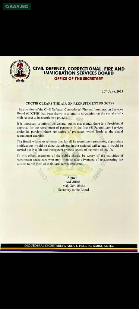 The Federal Government has disowned a fake recruitment letter currently circulating on social media, warning Nigerians, especially job seekers, to be cautious and...