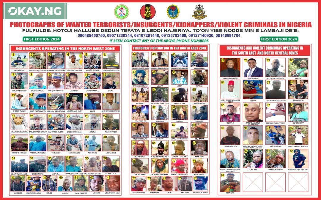 The Defence Headquarters (DHQ) has released a notice declaring 97 individuals wanted for suspected involvement in terrorism, insurgency, kidnapping, and other violent crimes....