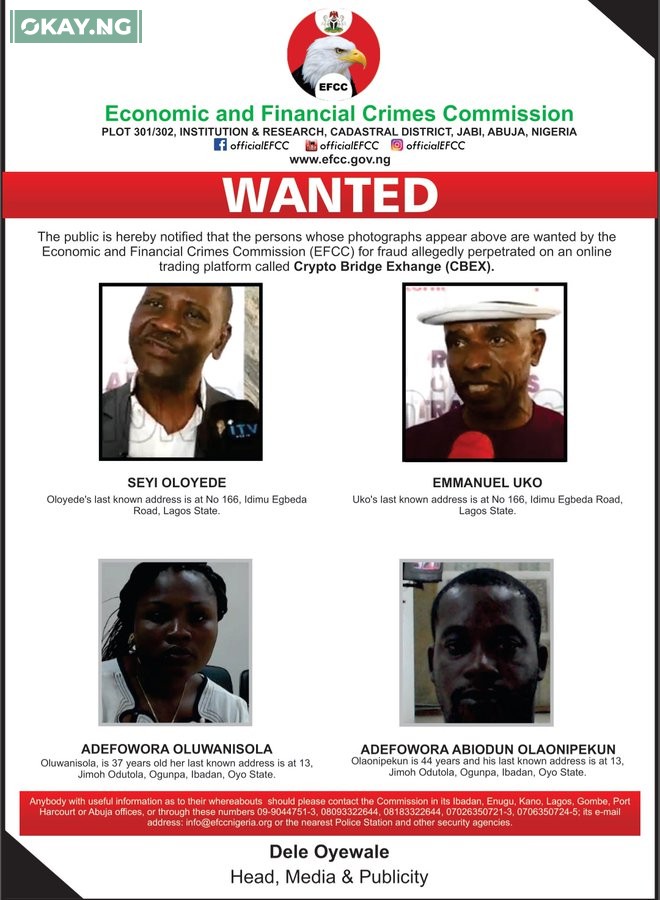 Adefowora Abiodun Olanipekun, one of the promoters of the cryptocurrency trading platform Crypto Bridge Exchange (CBEX), who was recently declared wanted by the...