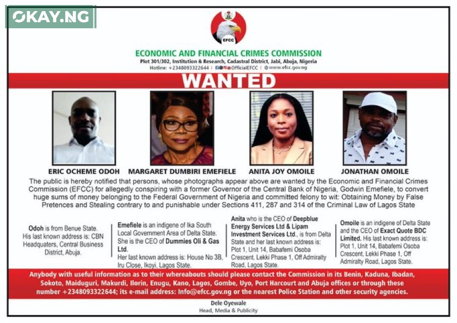 The Economic and Financial Crimes Commission (EFCC) has declared Margaret Emefiele, wife of former Central Bank of Nigeria Governor Godwin Emefiele, along with...