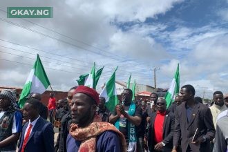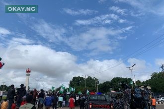 Demonstrators in Plateau State gathered at the Old Airport roundabout in Jos…