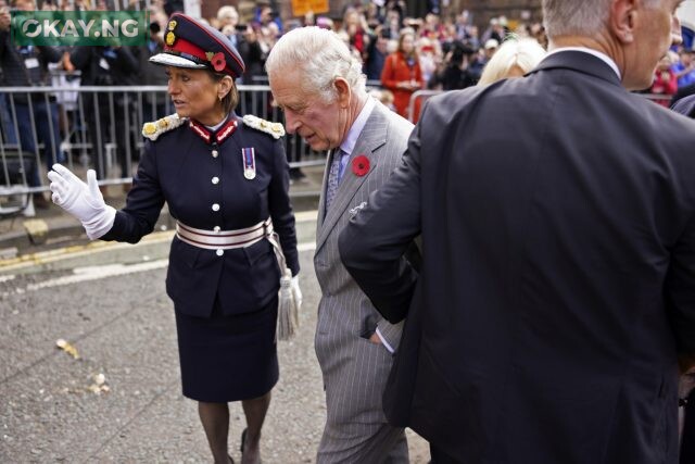 King Charles III and his wife Queen Consort Camilla narrowly avoided being hit with eggs thrown at them during a visit to northern...