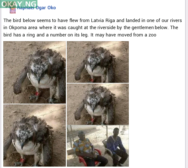 A huge bird suspected to have flown all way from Riga, capital of the Republic of Latvia, has landed in Cross River state....