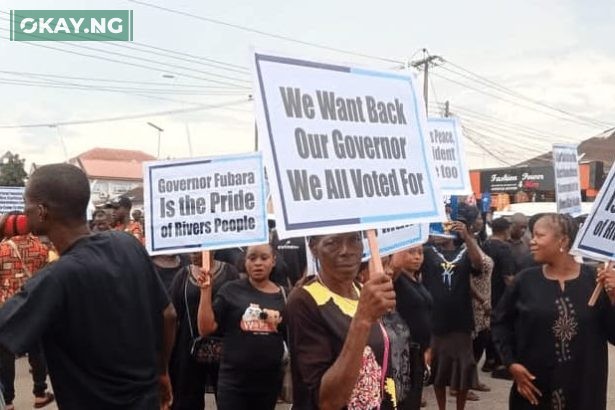 Hundreds of supporters of the suspended Governor of Rivers State, Siminalayi Fubara,…
