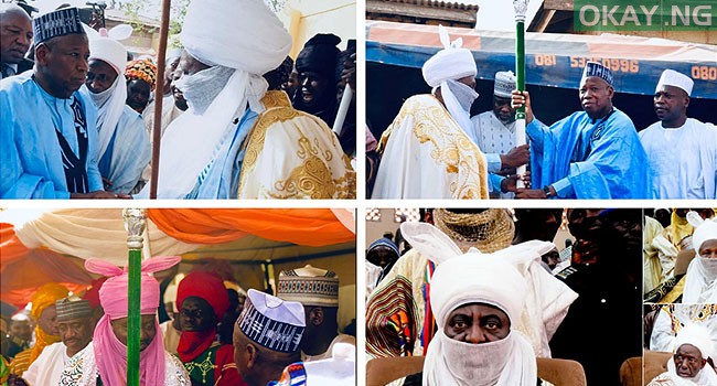 Governor Abdullahi Ganduje has presented staff the staff of office to the four new emirs in Kano state. Okay Nigeria had reported earlier...